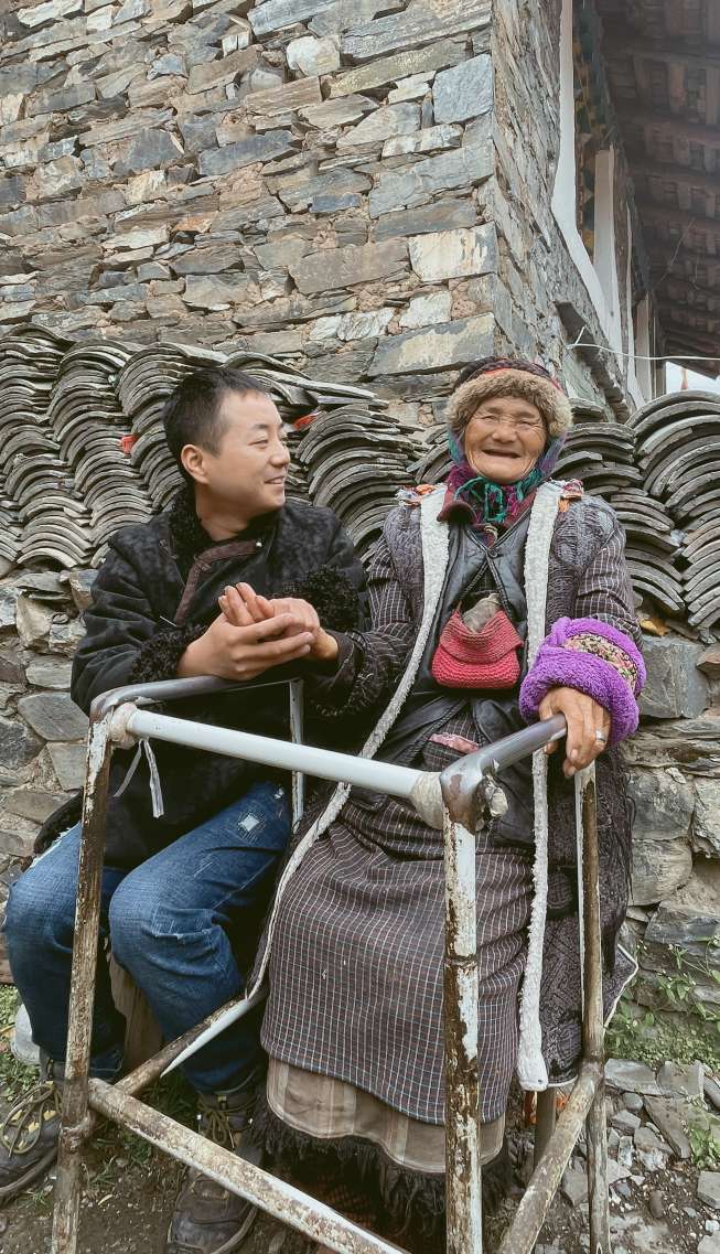 3月30日,在知木林镇丹巴彭初家,杨斐正用“黑水话”和丹巴彭初交流。记得第一次到丹巴彭初家,杨斐就被这个个子不大却励志向上的黑水汉子打动了。丹巴彭初多年前遭遇车祸导致腿瘸,妻子在五年前因病瘫痪在床,吃喝拉撒都需要人照顾,家里两个孩子上学,家里的重担落在他一个人身上,但是他依旧积极乐观,努力奋斗。为了减轻这个家庭的负担,杨斐和彭州的爱心机构联系,在社会各界的帮助下,为这个家庭装修了天花板,安装了灯具。丹巴彭初告诉记者,再过一段时间,等天气暖和了,一家子就会搬进新房子住,这样方便照顾瘫痪的妻子。