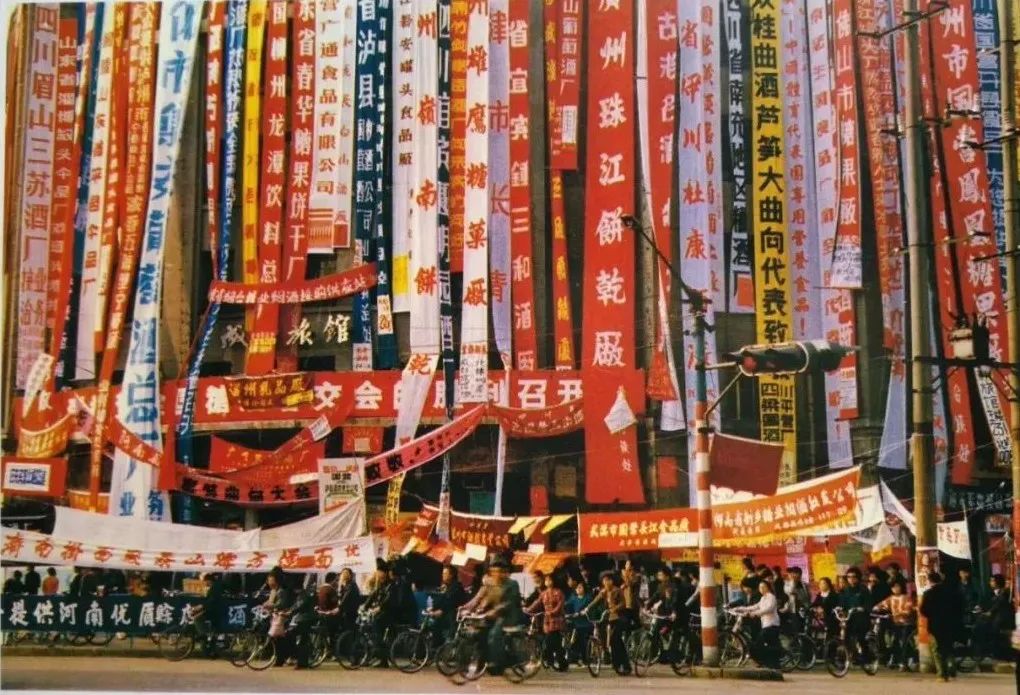 簇拥在成都旅馆外的巨幅标语、成群结队的自行车大军,还有铺在地上的简易展位,无不展示了那个时代对于市场先机的跃跃欲试。