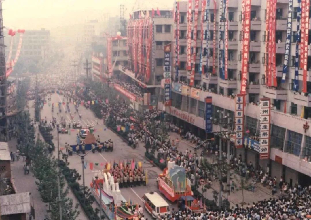 ▲1987年首届泸州名酒节彩车游行盛况
