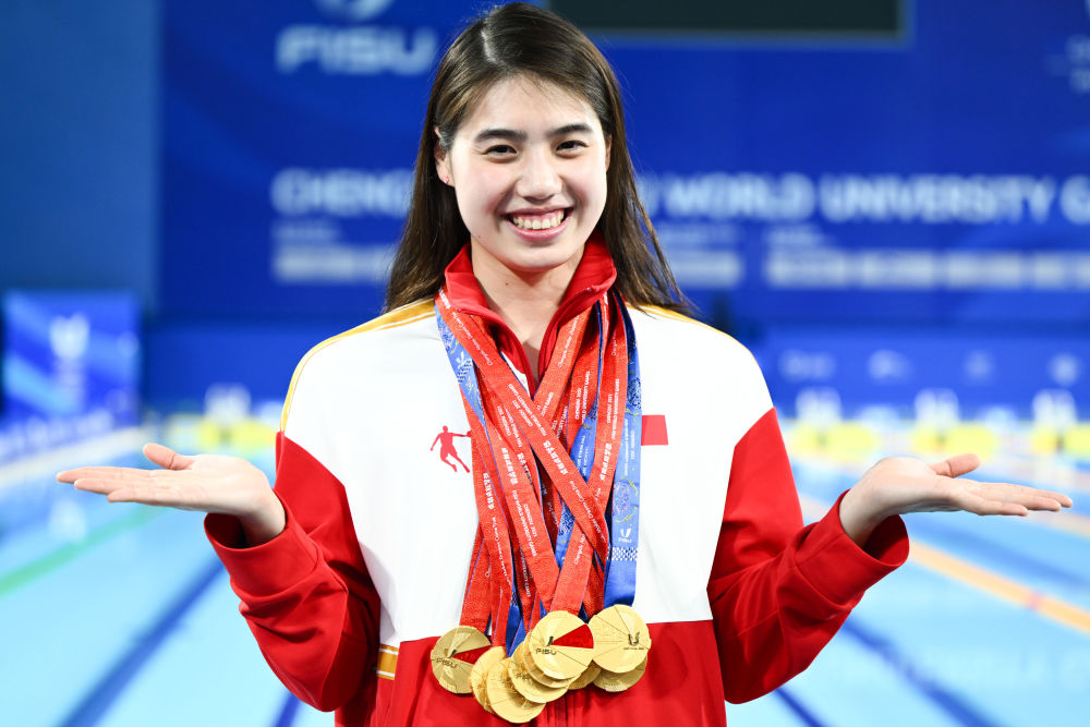 新华社成都8月7日电(记者 孙哲、杨帆、马思嘉)7日,成都大运会游泳项目迎来收官日。中国队有4枚金牌入账,“蝶后”张雨霏继续展现强大的统治力,获得两金,个人在本届赛事中收获9枚金牌。