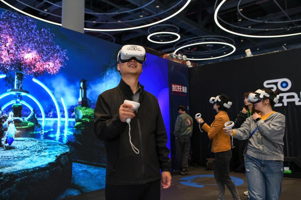 参观者在现场体验沉浸式场景。新华社记者唐文豪 摄