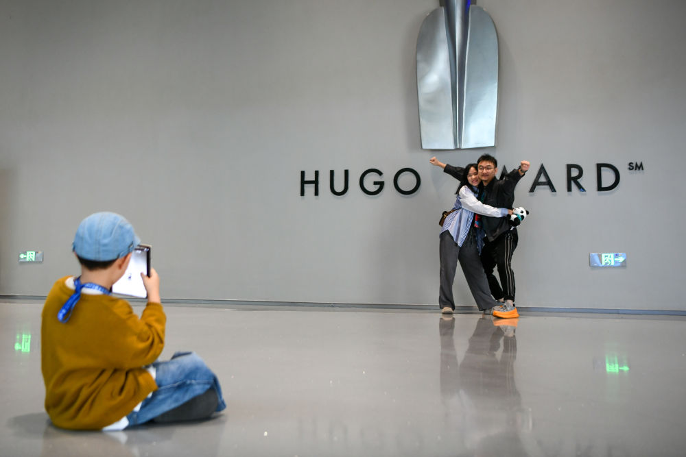 “在展区内,随处可见沉浸式互动体验的科幻场景,为我们科幻迷打造了一个个充满激情、启发思考的空间。”科幻爱好者吴思易说,他专门从重庆赶来参观,看到这么多“神奇”的科幻展品,非常激动。