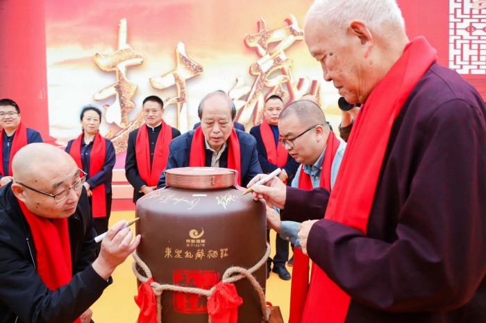 记者看到,现场以封藏承愿,用老酒祈福,深度还原传统藏酒祈福文化,展现绵竹非物质文化遗产——“钟氏东圣酒传统酿酒技艺”,展示“世界美酒特色产区”“中国美酒名城”的绵竹特色。