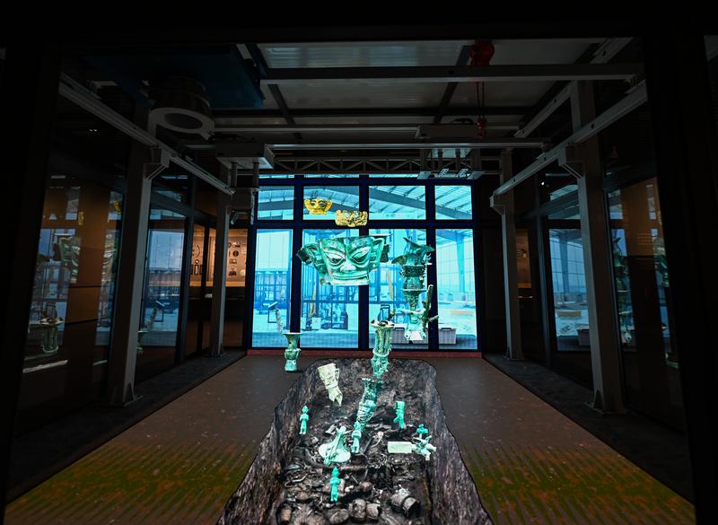 在三星堆博物馆新馆拍摄的裸眼3D技术还原的考古“方舱”。新华社记者王曦 摄