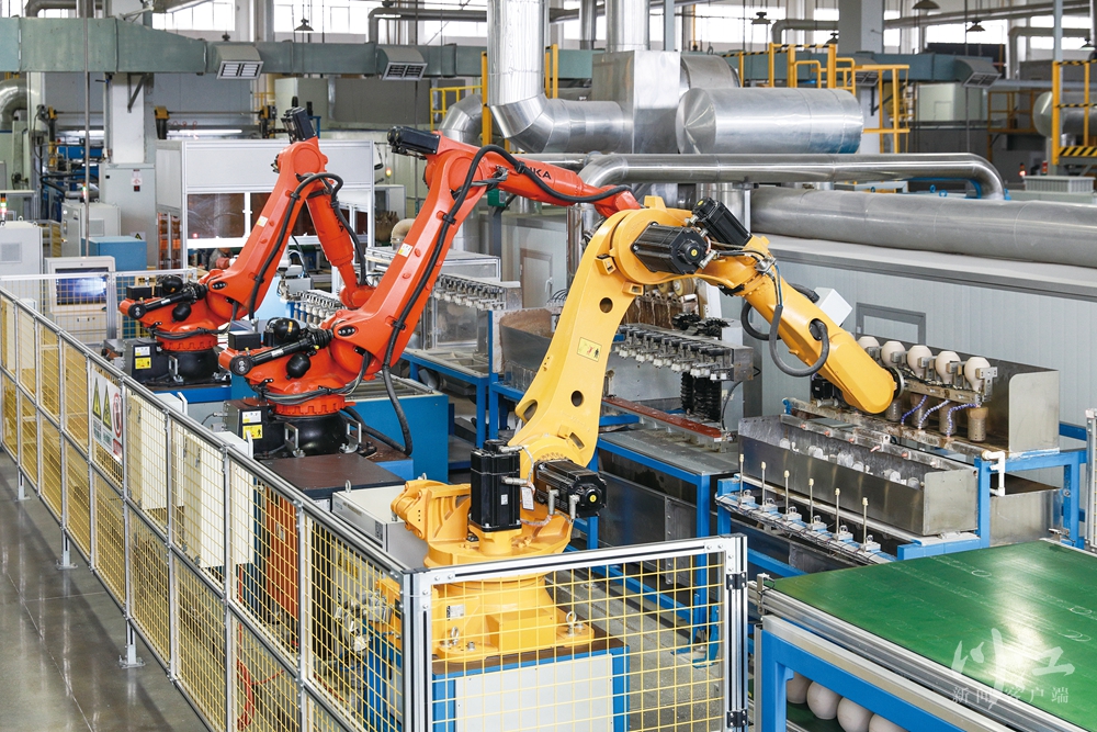 合江县华艺陶瓷有限责任公司生产线上,智能机器人有序赶制产品订单。李贵平 摄