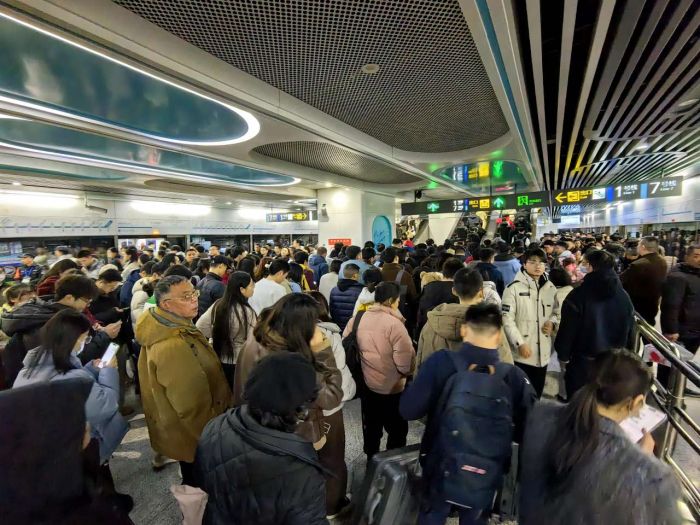 据悉,为保障乘客安全出行,成都轨道交通提前分析元旦节前客流趋势,从行车组织、客运组织、乘客服务等方面精心筹划、提前准备,多措并举保障乘客安全出行。