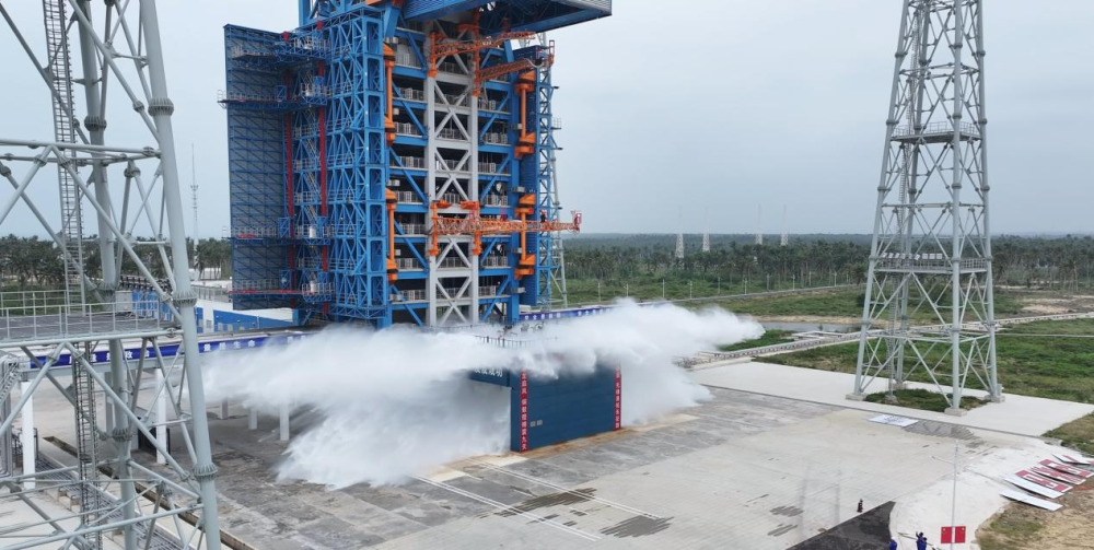 海南国际商业航天发射有限公司工程设备部部长葛立新说,为了更好地降温降噪,一号工位摒弃传统塔顶水箱设计,引入挤压式大流量喷水系统。地面设置两个储气罐和一个储水罐,当火箭点火时,控制系统立即下发指令,储气罐中的高压压缩气体让储水罐中的水从喷水孔高速喷出形成水幕,15秒可释放500吨水,不仅让发射台和导流锥等关键设备免受燃气流烧蚀,还能使降温降噪效率提升30%。