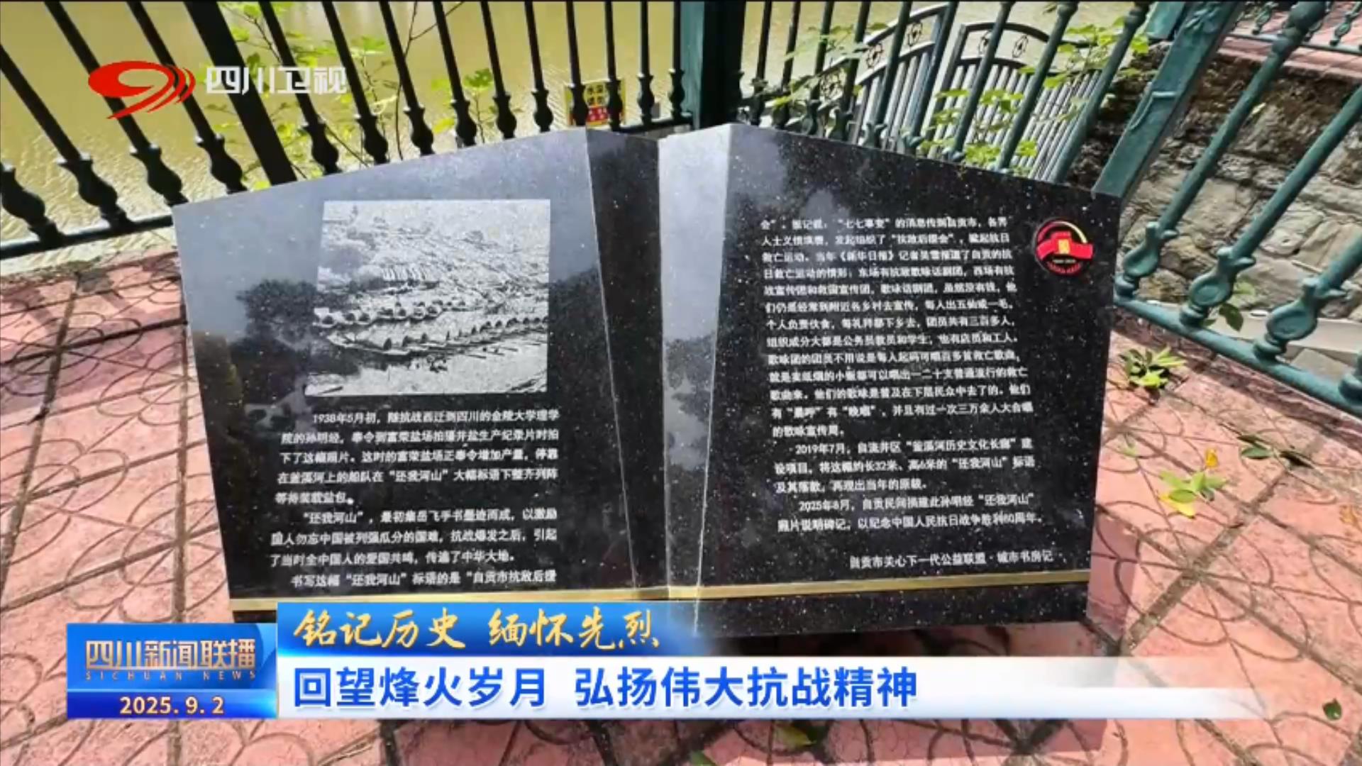 在自贡,由社会各界捐建的“还我河山”纪念碑在釜溪河畔安装落成。抗战时期,自贡民众节衣缩食,慷慨解囊支持抗战,自贡抗敌后援会还将“还我河山”四个大字深深刻在釜溪河畔巨大的崖壁上。80年后的今天,纪念碑落成,将那段波澜壮阔的抗日历史,再次镌刻于历史天空之上。