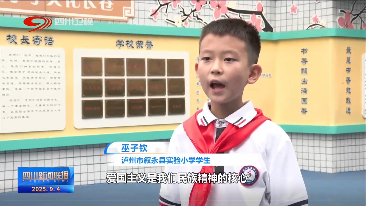 泸州市叙永县实验小学学生 巫子钦:习爷爷说过,爱国主义是我们民族精神的核心。看完今天的阅兵式,我更加懂得了这句话的含义。作为新时代的少年,我们将铭记历史珍惜当下,努力学习,成为对祖国、对人民有用的人。