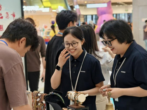 本次活动还设置了折扣优惠与消费抽奖环节,吸引了大量市民积极参与。邻近的华为店铺员工也纷纷加入,以实际行动支持残疾人手工艺品。