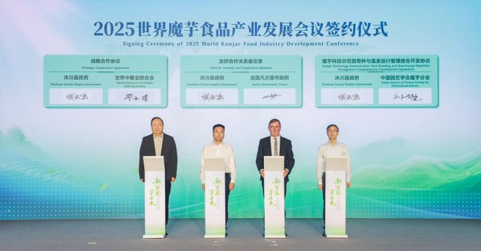 本次大会为沐川提供了与国际深度对接的重要平台。在战略合作层面,沐川县先后与法国凡尔登市签署友好合作备忘录,与世界中餐业联合会、中国园艺学会魔芋分会达成战略合作。其中,与凡尔登市的合作中涉及一大重磅内容:沐川县魔芋产业链主企业四川森态源生物科技有限公司计划投资千万欧元在凡尔登市建设魔芋加工基地,进一步拓展欧洲市场。这是中国魔芋产业界在国外建立的首个精深加工基地。
