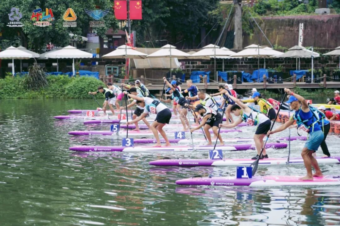 作为赛事亮点,刚斩获2025年桨板亚洲杯马拉松赛冠军的叶贵桐、徐浩婷等顶尖选手悉数亮相,在3000米长距离竞速等项目中展开激烈角逐。岸边观众欢呼声此起彼伏,与河面桨声交织成趣。