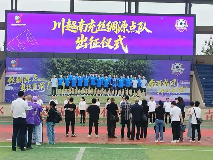四川经济网南充讯(记者 李国富)9月28日上午,南充高中临江校区旌旗招展、掌声雷动,南充丝绸源点队“川超”联赛出征仪式在此举行。南充市委常委、宣传部部长廖雪梅,副市长欧阳梅,市教育和体育局局长赵爱华,主赞助商六合集团总经理明刚及数百名球迷齐聚现场,共同为即将奔赴赛场的足球健儿壮行,见证这支队伍承载南充百年足球精神开启新征程。