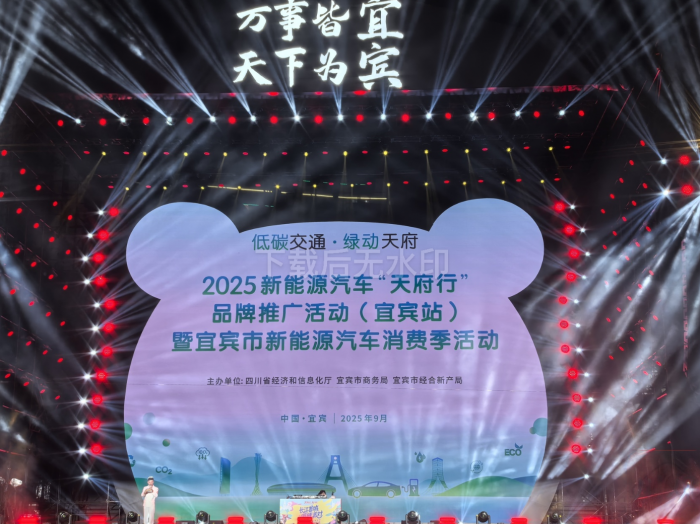 四川经济网讯(记者 杨波 侯云春 文/图)9月27日晚,在“川超”联赛宜宾长江首城队主场迎战自贡灯城燊龙队之际,2025新能源汽车“天府行”品牌推广活动(宜宾站)暨宜宾市新能源汽车消费季活动正式启动。活动联袂火热的“川超”赛事、国庆假日宜宾熊猫音乐嘉年华、特色美食体验等系列“十一”消费季活动,让市民和游客在观看球赛直播、参与多元娱乐互动的同时,近距离感受“四川造”汽车科技的魅力与实力。
