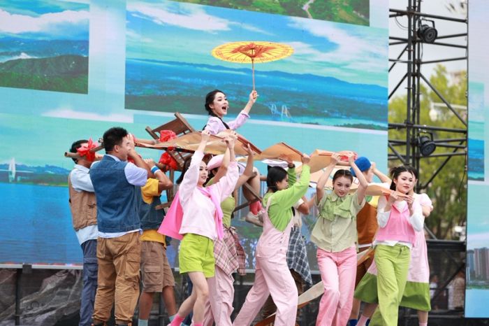 随后,东区五市11个区县的精品节目轮番登台,为观众带来一场乡土厚重、时代鲜活的视听盛宴。每个作品扎根蜀东沃土、饱含家乡深情,以独特的艺术语言绽放光彩——南充市仪陇县的情景舞剧《春潮绽放》引人入胜,舞者们以灵动的肢体语言,生动地勾勒出乡村振兴进程中的蓬勃景象,将新时代乡村的生机与希望娓娓道来,细腻的情感表达引发了观众强烈的共鸣。