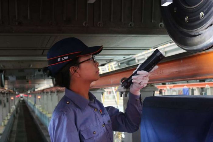 在多数人印象里,动车组检修是体力与技术双高要求的“硬核”活儿,常年与油污为伴、需高强度作业,似乎与“细腻”“柔美”等特质无关。而祝星悦却用实际行动打破了这一固有偏见,检修过程中,她会为了一个疑似异常的部件反复核对参数,会在检查表上工整记录每一项数据,用青春的细致与坚韧,在检修一线绽放独特光彩。