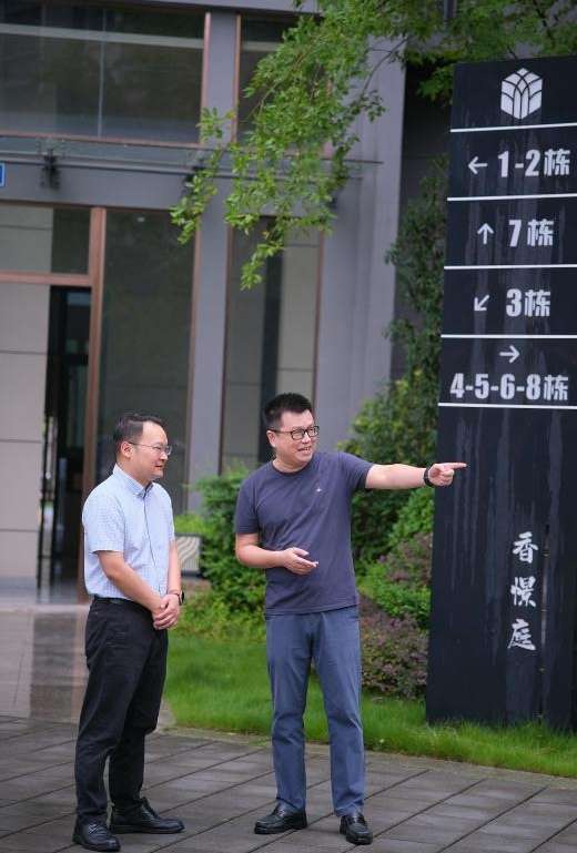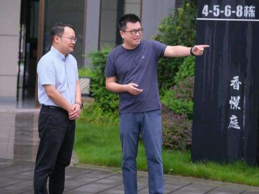 城发集团相关工作人员阮云晓与成都成房工作人员李珣在香憬庭小区内