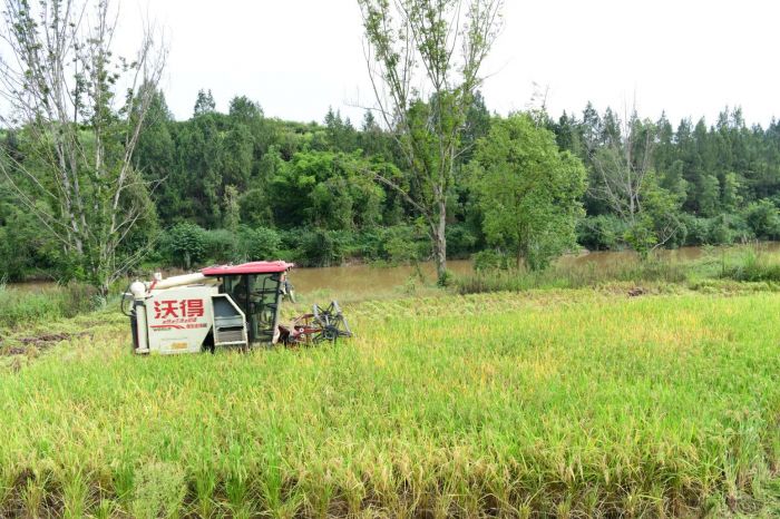 当天,浮山村股份经济合作联合社还组织联合收割机为浮山村6组村民收割水稻。收割机穿梭于金黄稻浪间,一株株稻穗被齐刷刷地尽收“囊”中,粉碎的稻秆同步还田。伴随着收割机靠近路边,眨眼间便完成装袋转运。“今天,共为12户村民收割了16亩水稻,既节省了劳力,提高了效率,又增加集体经济收入1600元。”浮山村党支部书记杨检介绍道。