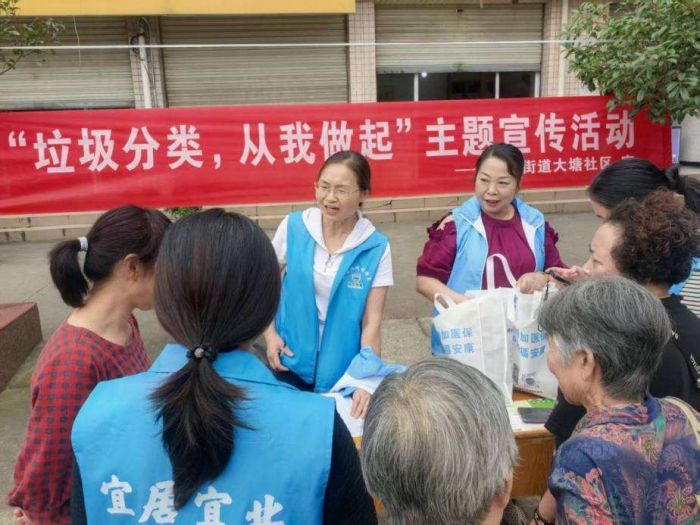 在大塘社区,志愿者结合PPT演示和声情并茂的讲解,系统阐述垃圾分类标准、投放要求及可回收物价值,现场互动答疑气氛热烈。