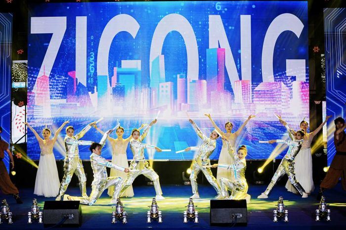 启动仪式在节目《时空舞韵》中拉开帷幕。该表演以“时空之旅”为线索,用三幕剧情串联起自贡的文化脉络,带领观众从地球诞生、恐龙繁盛的侏罗纪穿越到因盐而兴的千年盐都,再走进灯火辉煌的现代“中国灯城”。