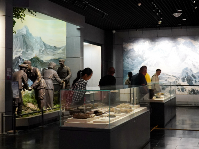 在红军长征翻越夹金山纪念馆,庄重氛围感染着每一位参观者。磨损的草鞋、锈蚀的马灯、泛黄的照片……一件件实物静静陈列,无声讲述着中央红军当年征服长征途中第一座大雪山——夹金山的艰辛历程。游客或驻足凝视,或低声交流。