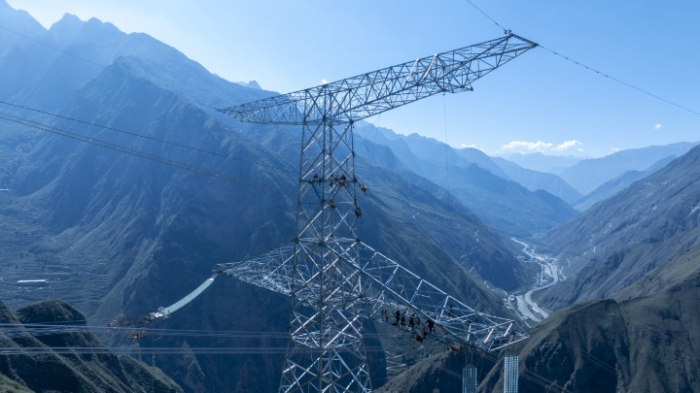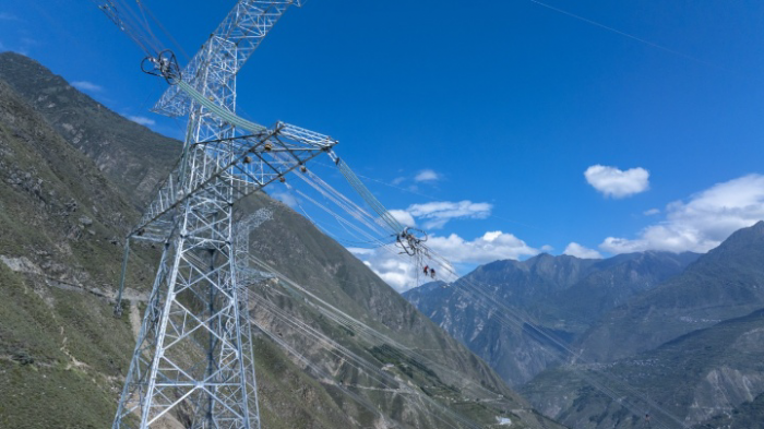 10月1日,在阿坝藏族羌族自治州汶川县深达600米的峡谷间,1420米大档距跨越架线作业正有序推进。电力工人们如同高空“走钢丝”,在输电导线上稳步移动,安装间隔棒并紧固螺栓。“这次峡谷跨越是工程川西段的首轮放线,大风大雾天气频发,挑战不小。”国网四川建设公司工程川西段业主项目执行副经理王伟介绍。