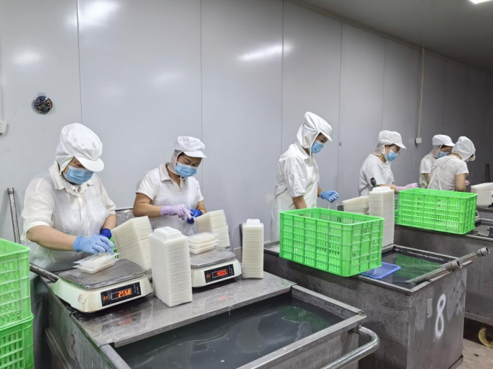 10月10日,记者走进四川食为天农业有限公司的魔芋制品生产车间,智能化生产线上机声隆隆,工人们在打结、装盒、称重、塑封等工序间高效协作。一盒盒包装精美的魔芋粉丝经重量检测后整齐装箱,即将发往海内外市场。