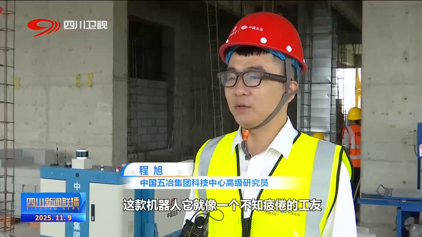 中国五冶集团科技中心高级研究员 程旭:这款机器人它就像一个不知疲倦的工友,能够背着货架跑,速度最快可以达到1.5米每秒,载重可以达到一吨,搬运的效率是传统人工的3到6倍。我们首创的融合导航技术,配合了激光雷达、毫米波雷达还有深度相机,即使在没有网络的这个工地上,它也能够自动识路、智能避障,电量不足的时候自己回桩充电。
