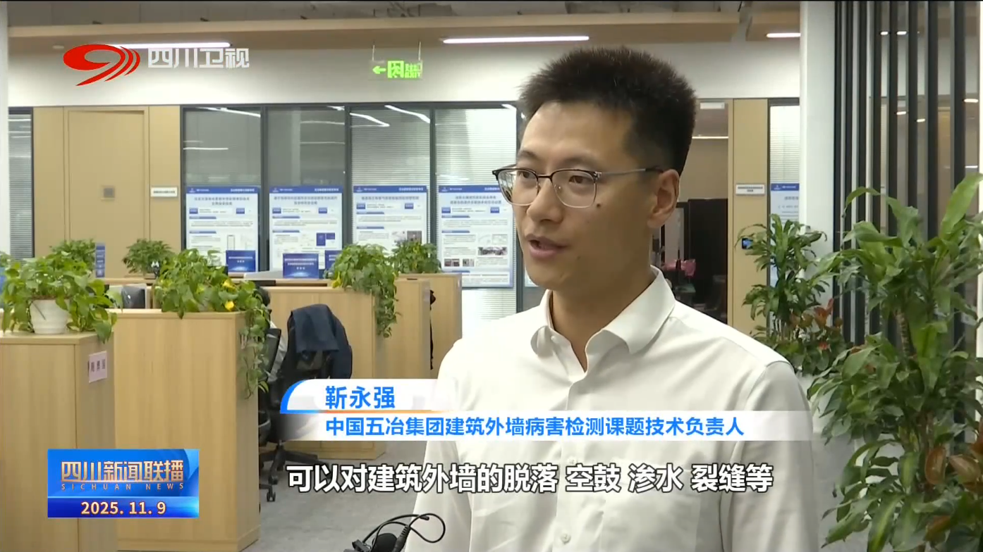 中国五冶集团建筑外墙病害检测课题技术负责人 靳永强:我们目前研发的这个系统,主要应用于建筑外墙的定期体检,无人机搭载可见光与红外热成像的镜头,可以对建筑外墙的脱落、空鼓、渗水、裂缝等多种类型的病害进行智能识别,现在国家正在推进的城市更新行动,我们这套自主研发的设备就可以大显身手。