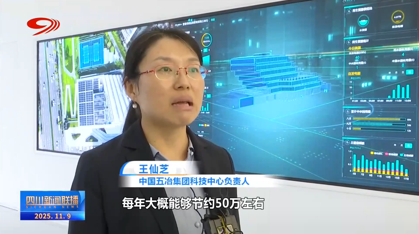 中国五冶集团科技中心负责人 王仙芝:通过独创的一个绿色能源质控系统,建筑能够自主降碳,我们的人工运维开支每年大概能够节约50万左右,系统目前已经在雄安(新区)、上海等5省15个项目进行了使用。