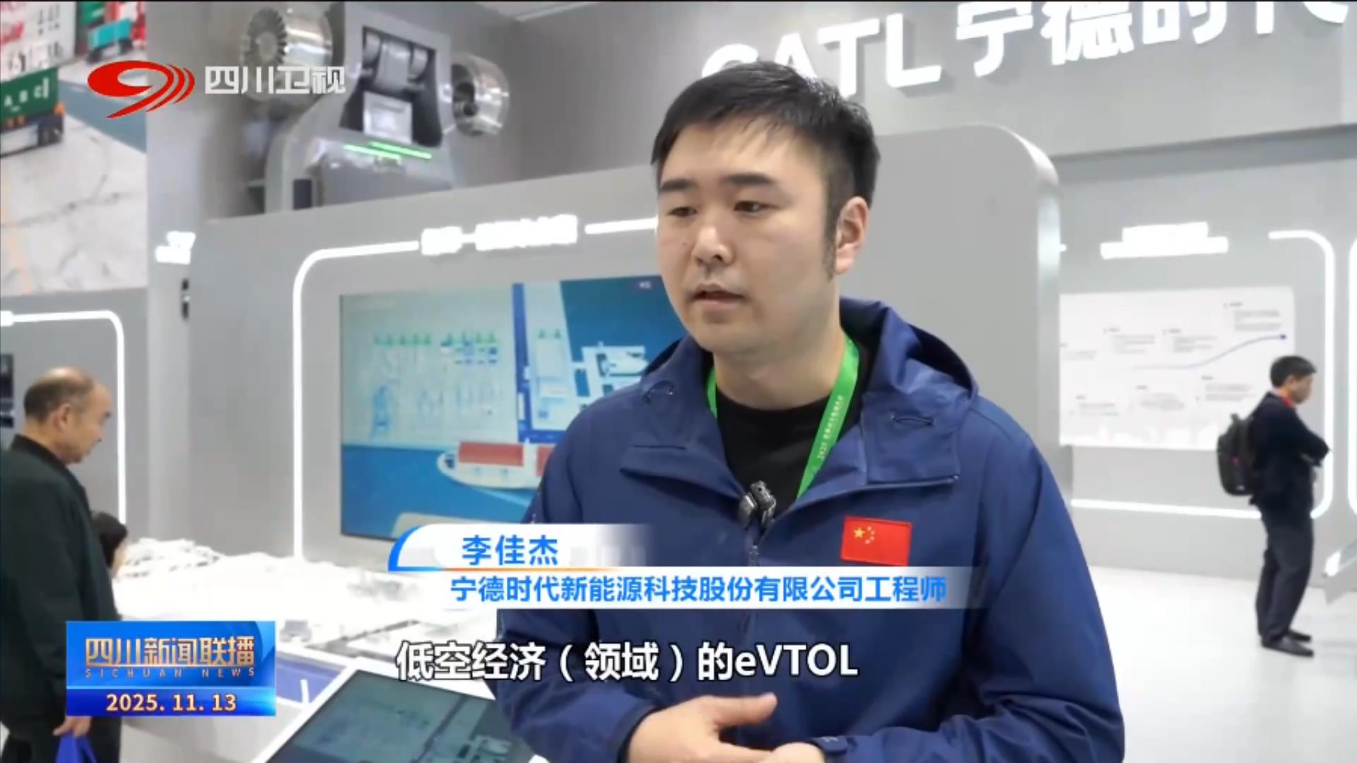 宁德时代新能源科技股份有限公司工程师 李佳杰:我们带来了四大解决方案,低空经济(领域)的这个eVTOL,(最长纯电航程)可以飞200公里。我们的船岸一体解决方案,不光是把电池用在船上,更是在港口的基础设施建设上,(还)带来了我们今年首发的钠新电池和骁遥双核电池。