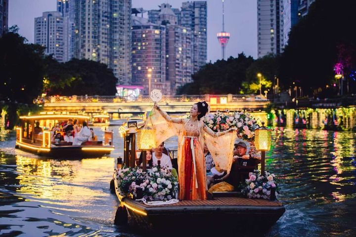 为了推动城市特色夜间经济与生态文化深度融合,2018年,成都着手打造了“夜游锦江”项目,生态、经济、美学价值统一,既展现成都历史风貌,又凸显现代都市的生态魅力与人文活力。