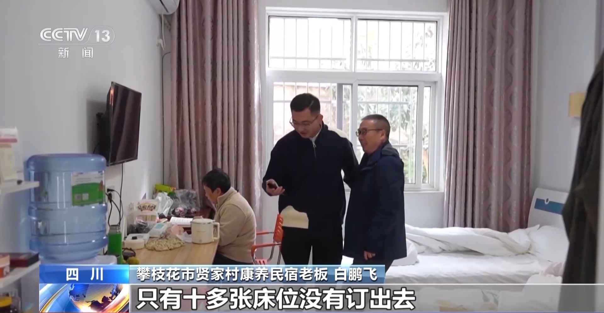 贤家村康养民宿老板 白鹏飞:我们一共是有70多个房间,有150多张床位,目前为止只有十多张床位没有订出去,12月初就会全部住满,到了春节的时候一房难求。