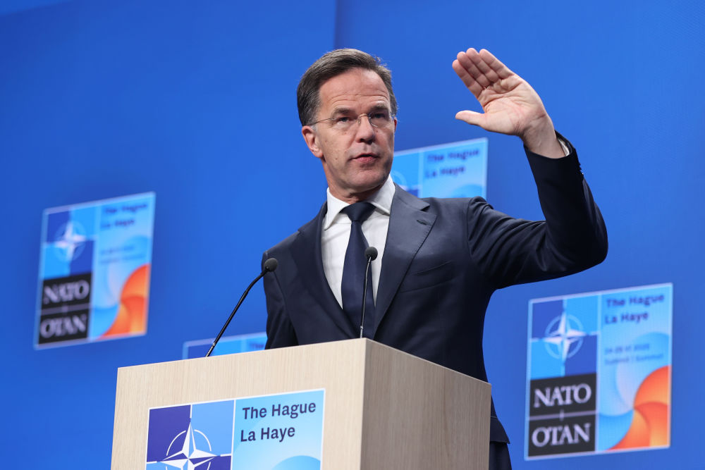 6月25日,在荷兰海牙,北约秘书长吕特在北约峰会期间出席新闻发布会。新华社记者赵丁喆摄