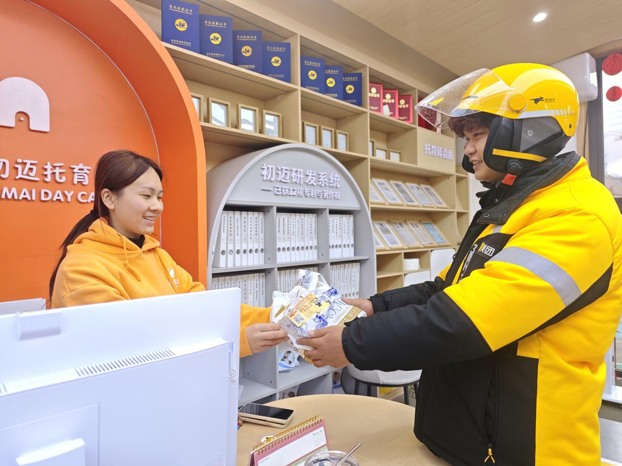 外卖员正在配送附有安全小贴纸的快件(央广网发 四川省安全生产委员会办公室供图)