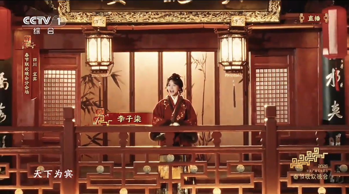 镜头一转,夹镜楼上,李子柒化身“支客师”,沉浸式拉开了“请春酒”的序幕。谭松韵、张韶涵、马赵凌云等演员,穿梭在酒席之中。燃面、高县土火锅、李庄白肉等特色美食摆满桌,伴随川北大木偶、沐川草龙等非遗展示,其乐融融的现场氛围下,大家把酒言欢,举杯共饮。