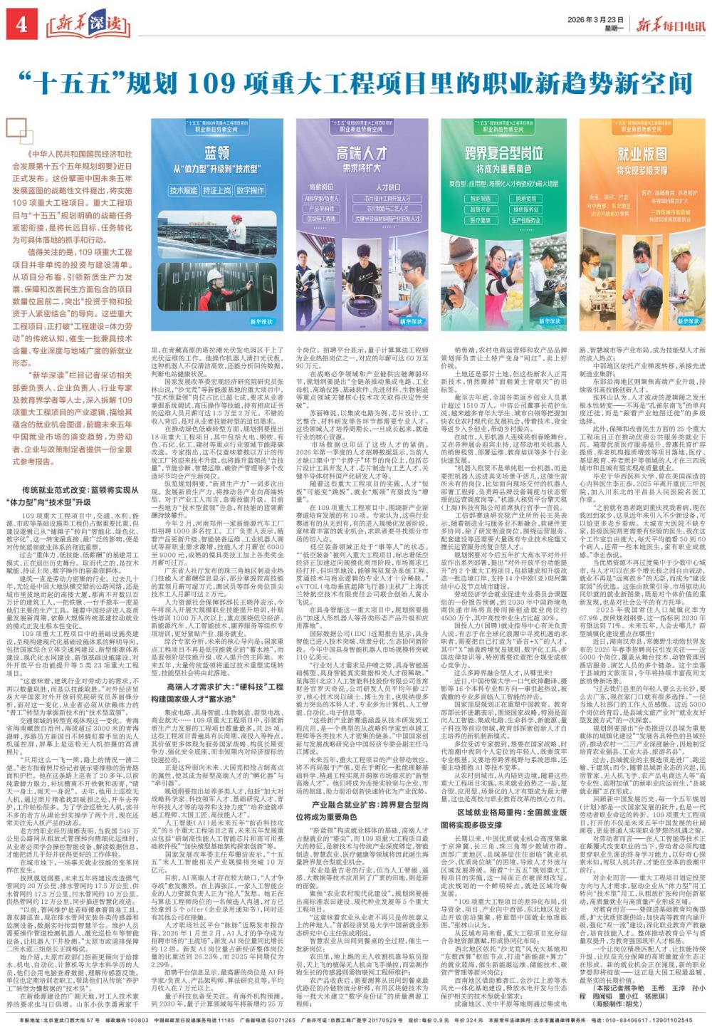 “新华深读”栏目记者采访相关部委负责人、企业负责人、行业专家及教育界学者等人士,深入拆解109项重大工程项目的产业逻辑,描绘其蕴含的就业机会图谱,前瞻未来五年中国就业市场的演变趋势,为劳动者、企业与政策制定者提供一份全景式参考报告。
