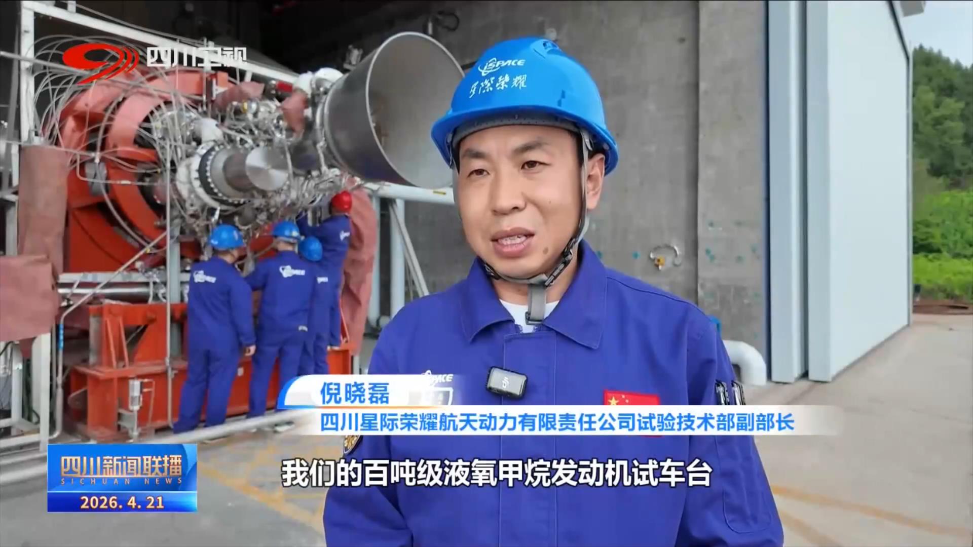 四川星际荣耀航天动力有限责任公司试验技术部副部长 倪晓磊:我们的百吨级液氧甲烷发动机试车台是目前西南地区唯一的火箭发动机试车台,总投资6000万元。目前,已经成功完成多次点火任务,具备每年100次全系统试车能力,年产值5000万元,可保障国内外液体火箭发动机地面试验任务。