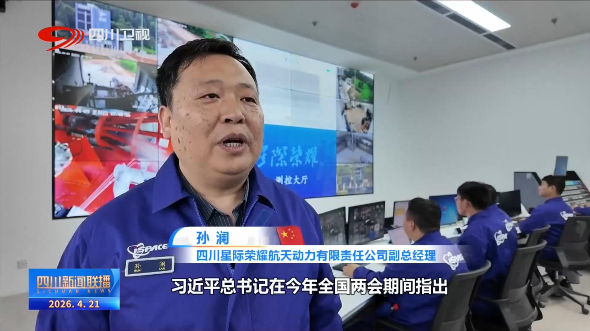 四川星际荣耀航天动力有限责任公司副总经理 孙澜:习近平总书记在今年全国两会期间指出,在培育壮大新兴产业上开创新局面,为我们民营商业航天企业鼓足了干劲、增添了信心。在“十五五”期间,我们将全面建成百吨级液氧甲烷发动机生产线,具备年产100台发动机、年试车100次以上的能力,年产值突破10亿元,通过智能制造产线,真正实现火箭发动机批量化生产。
